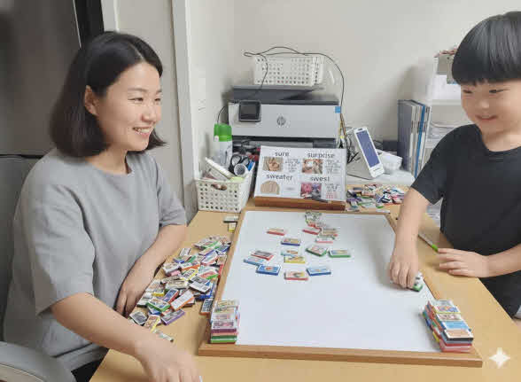 퍼즐잉글리시 커리큘럼으로! 엄마표 영어 수업 시 필요 교재 1. 노트북(20만 원) / 당근에서 구입 시 2. 모니터 1대(3만 원) / 당근에서 구입 시 3. 초등 800단어 원목 양면 카드(90만 원) 4. 회화 프로그램 1개 5. 영어도서관 1개 6. 퍼즐잉글리시 카페 영단어 카드 영상 제공